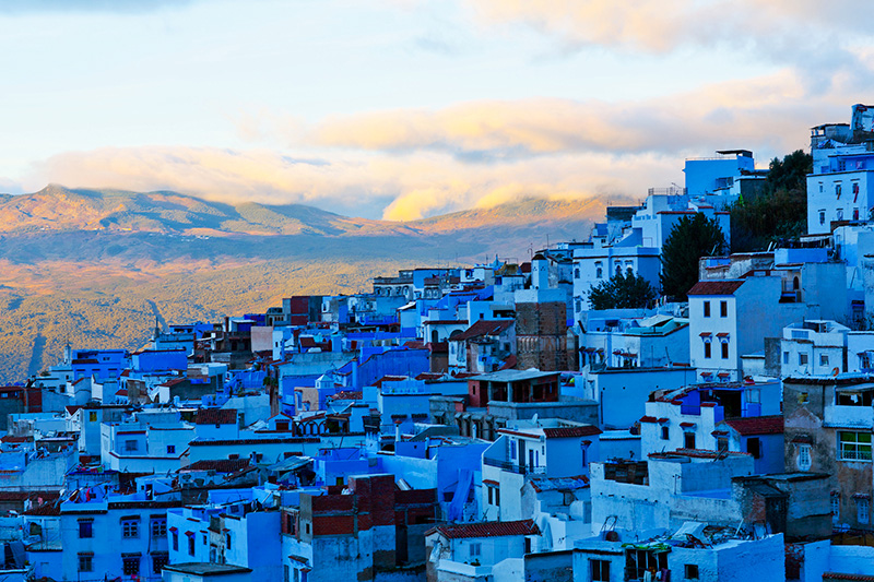 Day 1: Fes to Chefchaouen Depart from your traditional raid in Fes and drive towards the North, about 2h 30 minutes, 210km from the city of Fes while enjoying the beautiful views and landscapes of the Rif Mountains. once you see the bleu washed buildings in a set valley then know you have got to the so called the bleu city.enjoy the views of this beautiful town and get to relax at a hotel where you will have dinner. You can enjoy Moroccan Tajin and Couscous, overnight at your hotel